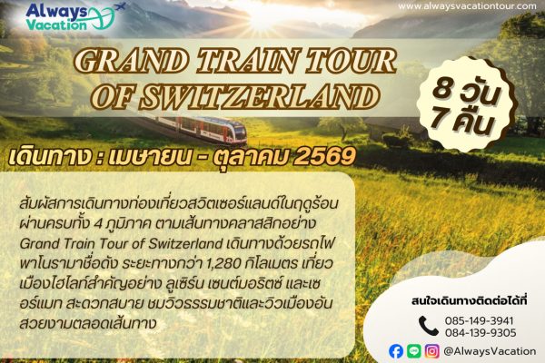 • สัมผัสการเดินทางท่องเที่ยวสวิตเซอร์แลนด์ในฤดูร้อน ผ่านครบทั้ง 4 ภูมิภาค ตามเส้นทางคลาสสิกอย่าง Grand Train Tour of Switzerland