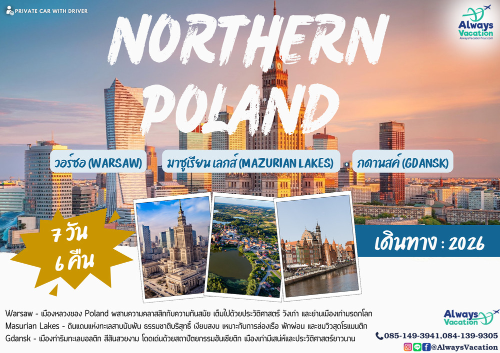 วอร์ซอ (Warsaw) – มาซูเรียน เลกส์ (Mazurian Lakes) – กดานสค์ (Gdansk)