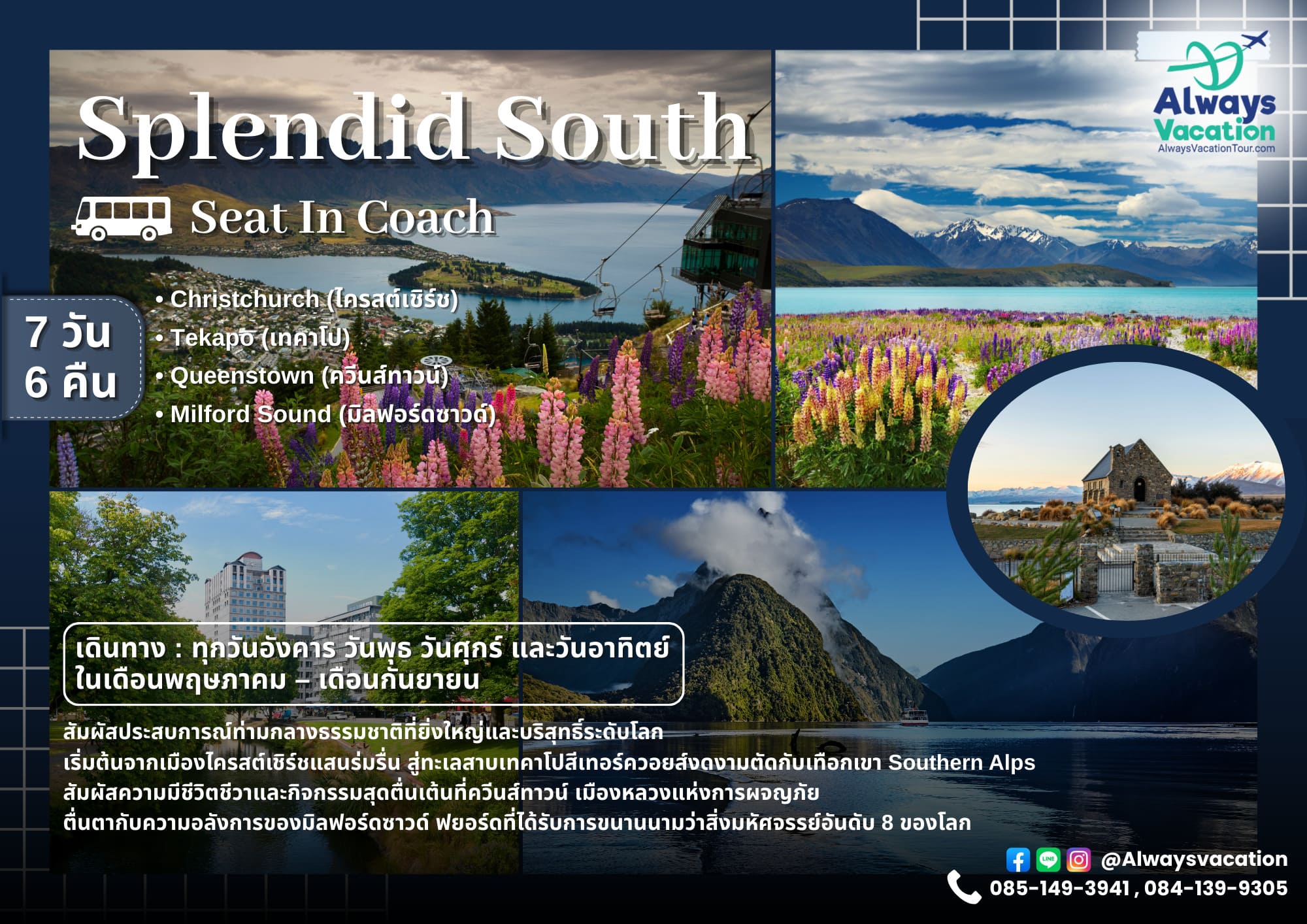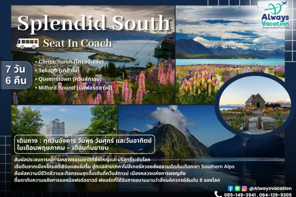 Christchurch (ไครสต์เชิร์ช) – Tekapo (เทคาโป) – Queenstown (ควีนส์ทาวน์) – Milford Sound(มิลฟอร์ดซาวด์)