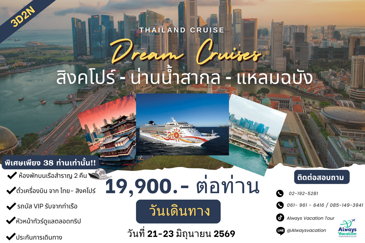 17.00 น.นำเช็ค-อิน ณ ท่าเรือ Marina Bay Cruise Centre ประเทศสิงคโปร์