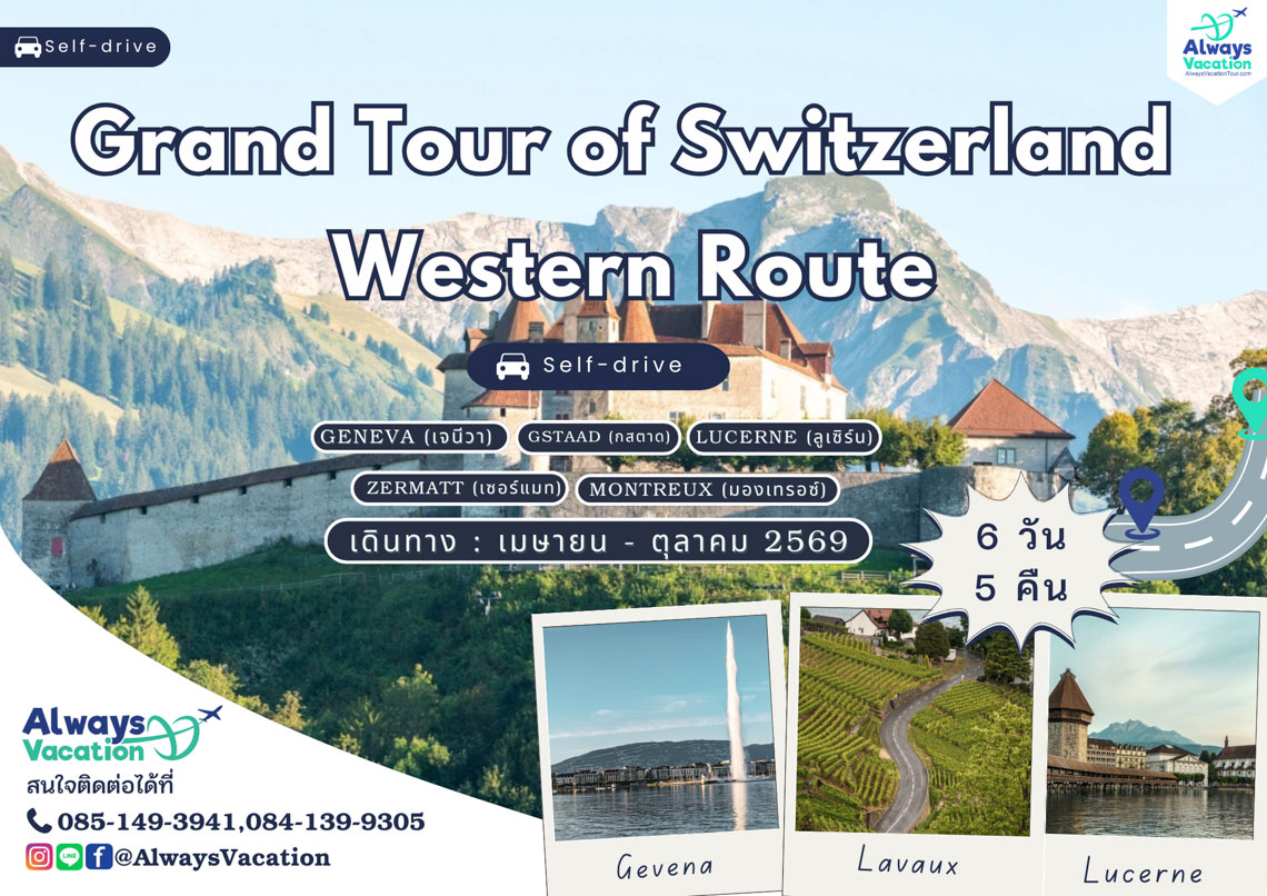 Geneva (เจนีวา) – Gstaad (กสตาด) – Lucerne (ลูเซิร์น) – Zermatt (เซอร์แมท) – Montreux (มองเทรอซ์)
